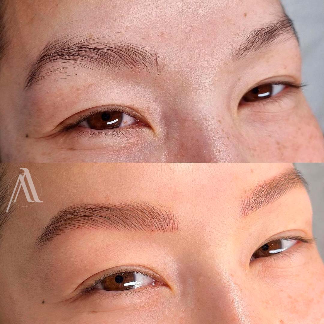 *Microblading* creates natural, hair-like strokes that mimic real eyebrow hairs, while the *Shadow* technique provides a soft, powdered finish, ideal for a defined and filled-in look. The *Hybrid* option combines the precision of microblading with the depth of shading, resulting in fuller yet naturally textured brows.