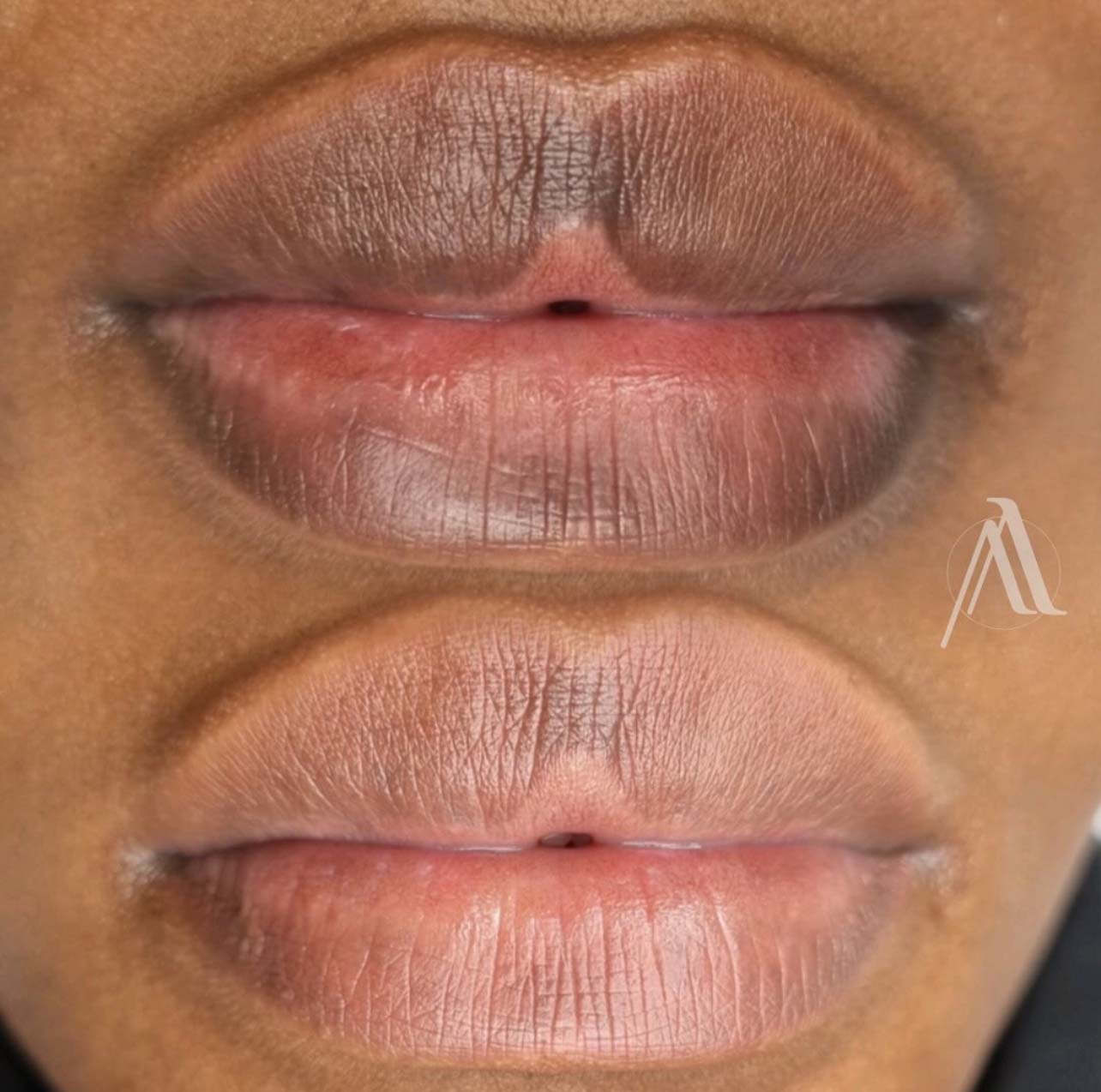 Dark Lip Neutralisation is a semi-permanent makeup procedure designed to correct and balance cool or dark-toned lips. Emilly, a highly skilled expert in this field is renowned for her ability to neutralise lip pigmentation while enhancing natural beauty. Her deep understanding of colour theory and techniques allows her to provide customised treatments that deliver even-toned, long-lasting results. Each case of lip neutralisation is unique, with the number of sessions tailored to the client’s natural lip colour and desired outcome. The procedure involves using a handheld device to apply pigment along the epidermis layer of the lips, with a numbing agent ensuring comfort throughout the procedure. For further questions or personalised advice, a consultation can be booked.